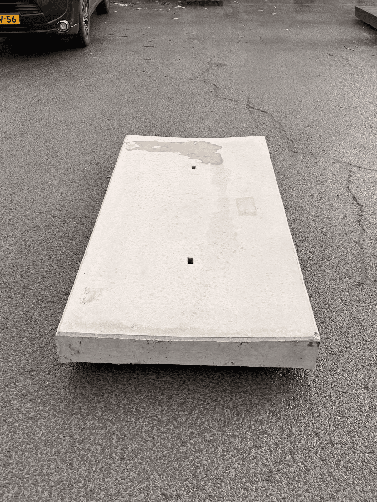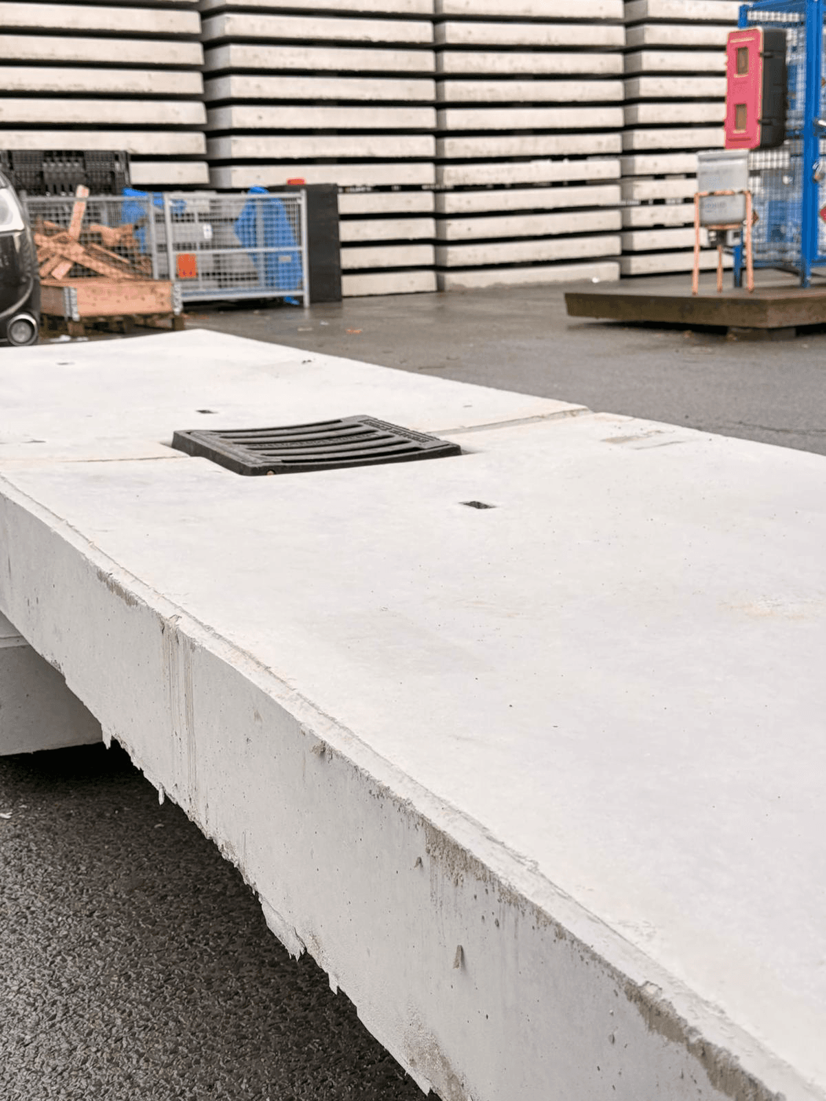 Betonplaat met geruwd oppervlak voor extra grip en veiligheid, geschikt voor voertuigen en natte ondergronden.