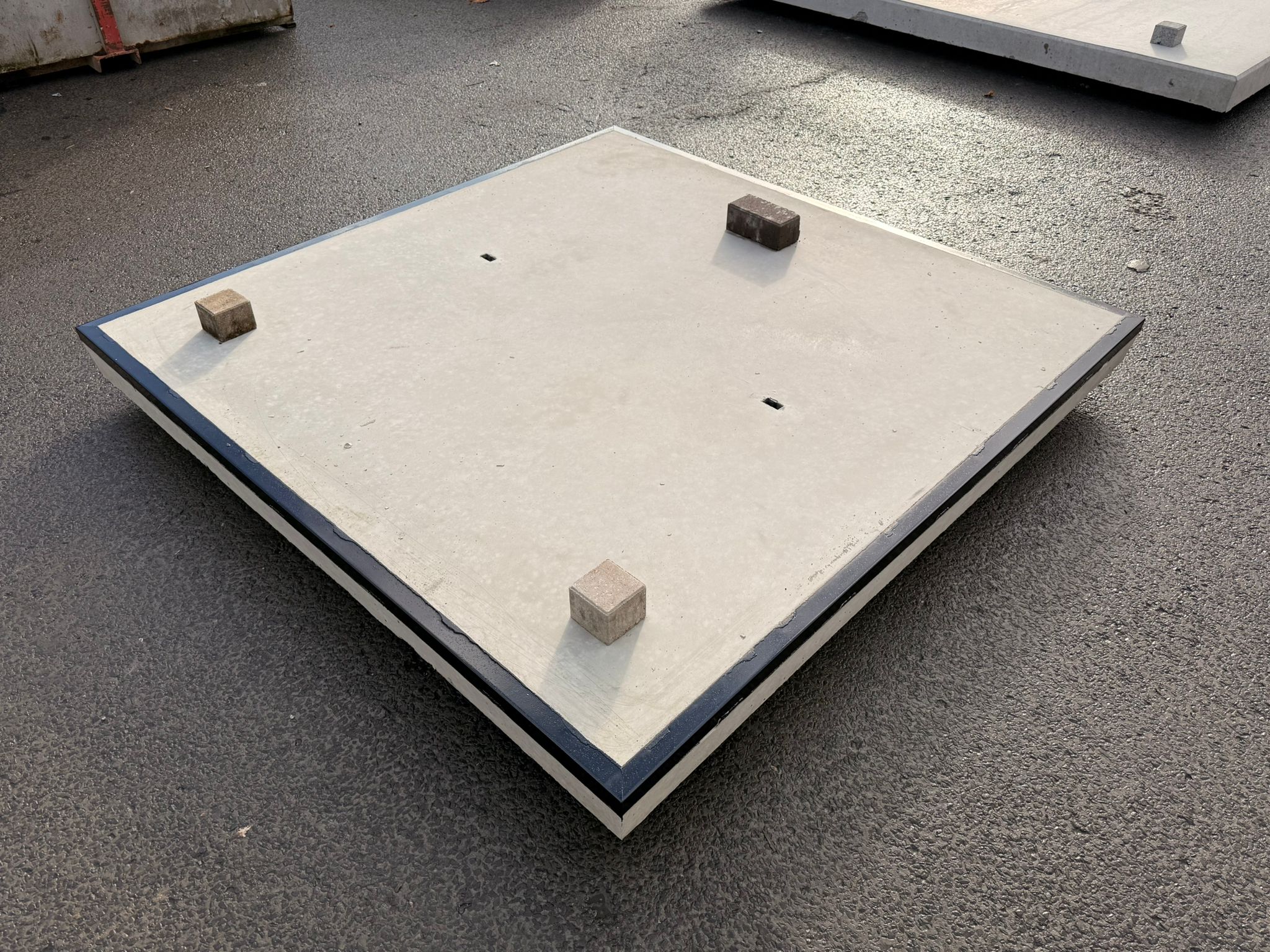 Til de platen op met twee bijsleutels of een vacuüm hijssysteem (bijv. met een vorkheftruck).
