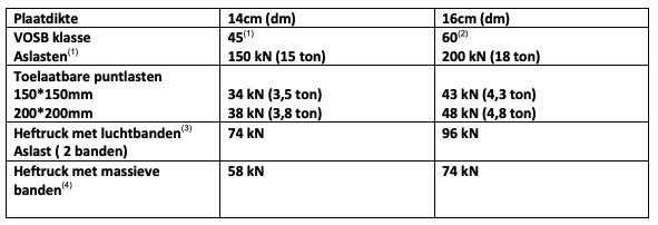 PlaatdikteVOSB-klasseAslasten14 cm45(1)150 kN (15 ton)16 cm60(2)200 kN (18 ton)